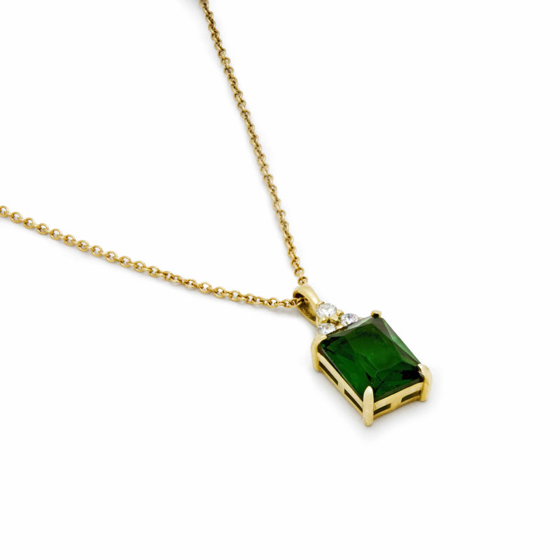 NG4792 Elegant Gold Emerald and Diamond Pendant Necklace