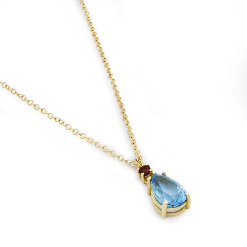 NG4805-1 Exquisite Pear-Shaped Blue Topaz and Garnet Pendant Necklace
