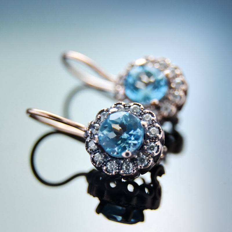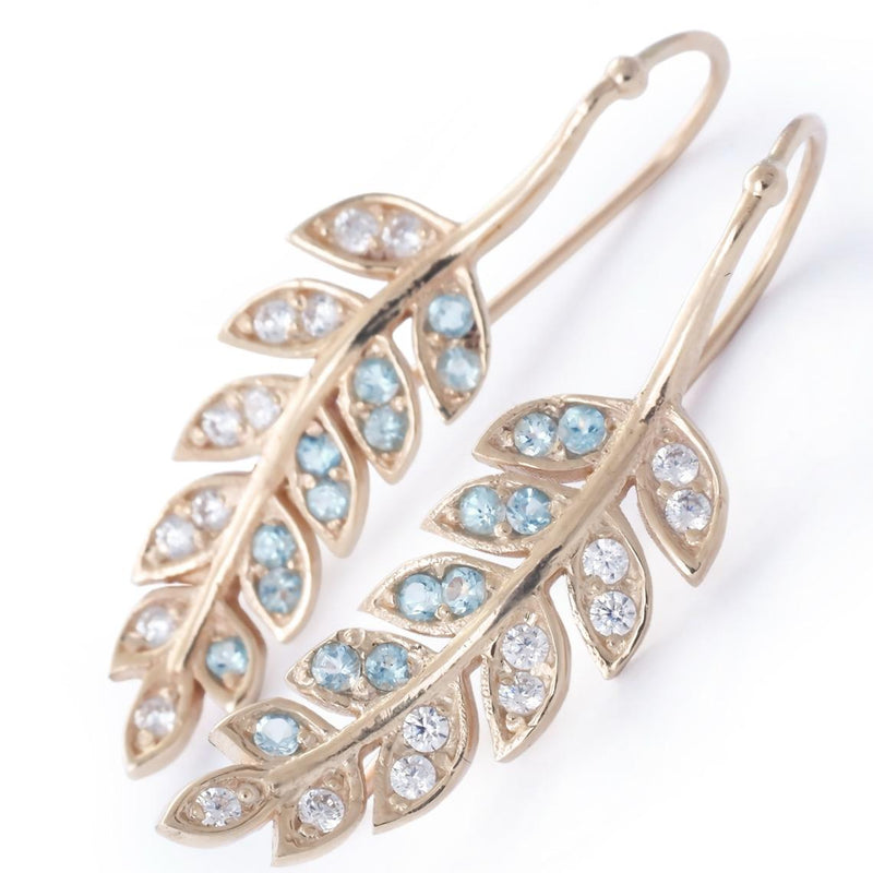 EG2220 Leaf Earrings with Blue Topaz and Zircons