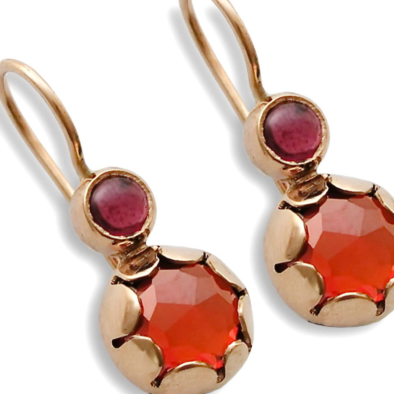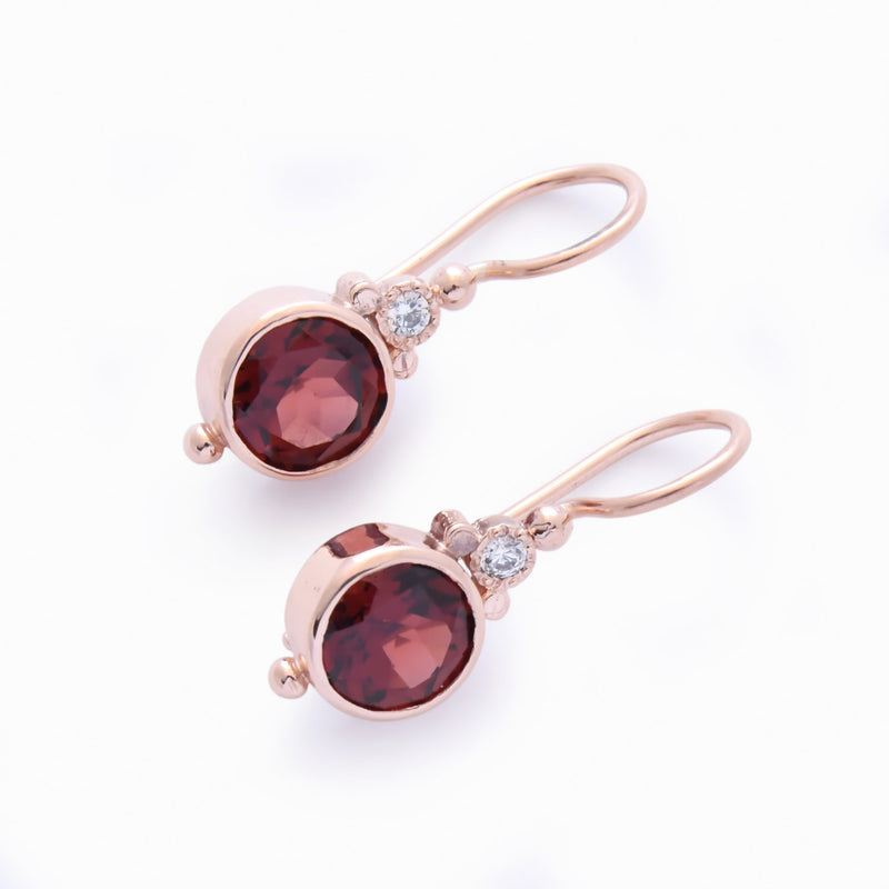 EG2217 Classic Round Gold Drop Earrings with Garnet and Zircon