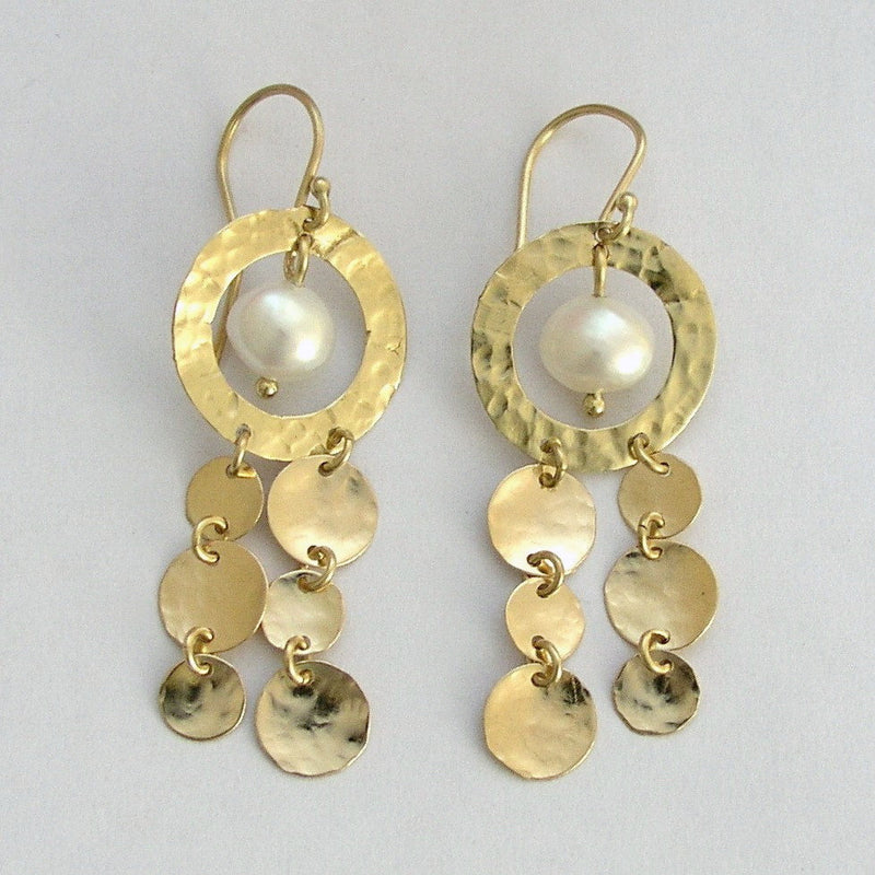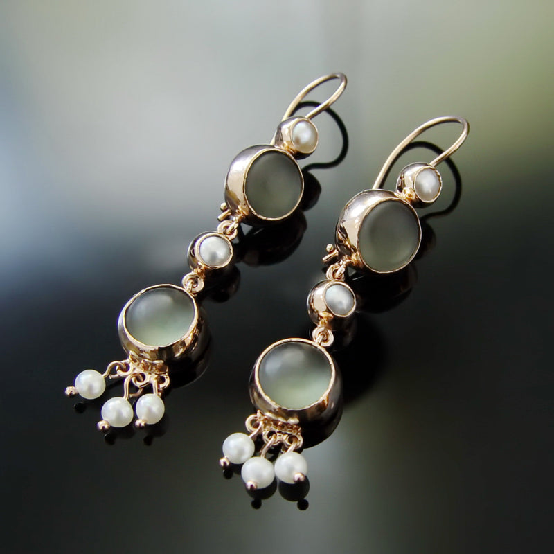 EG0759D-1 Gold Chandelier earrings with Green Quartz and Pearls