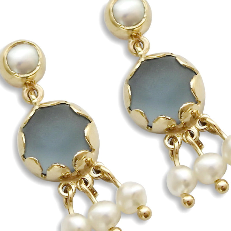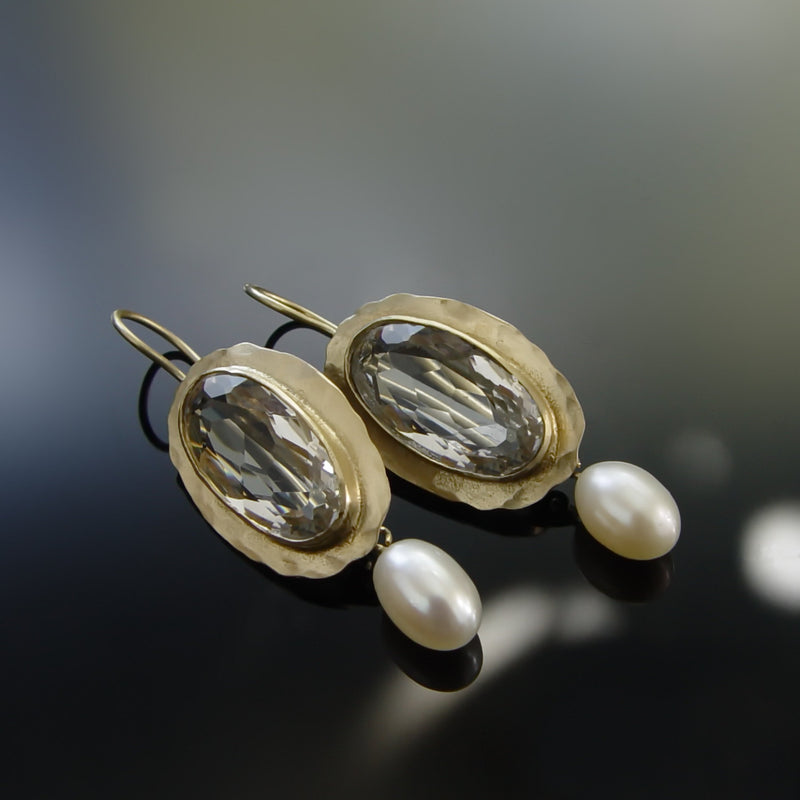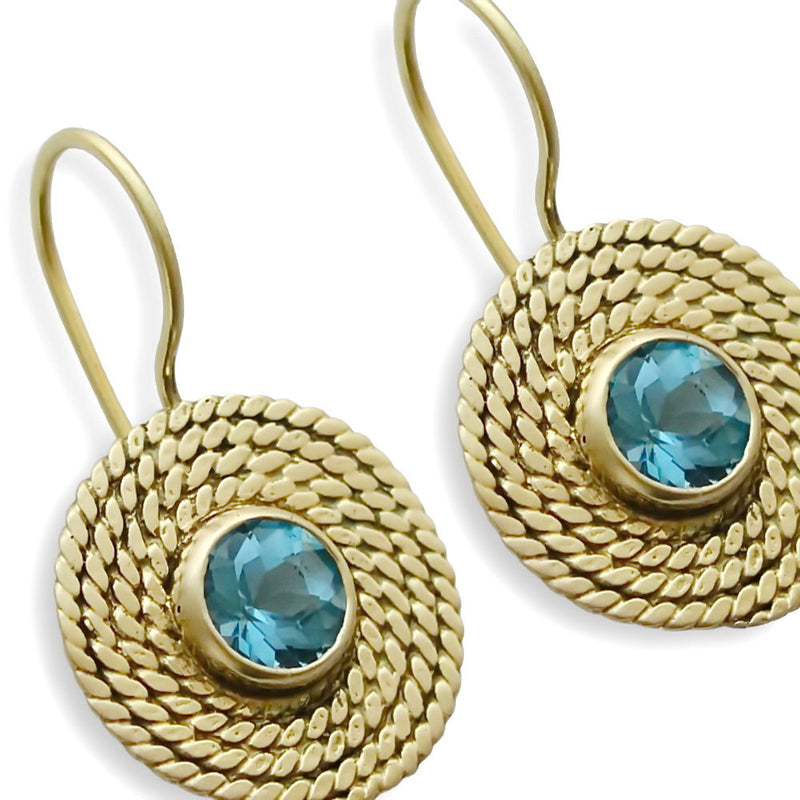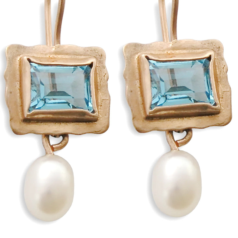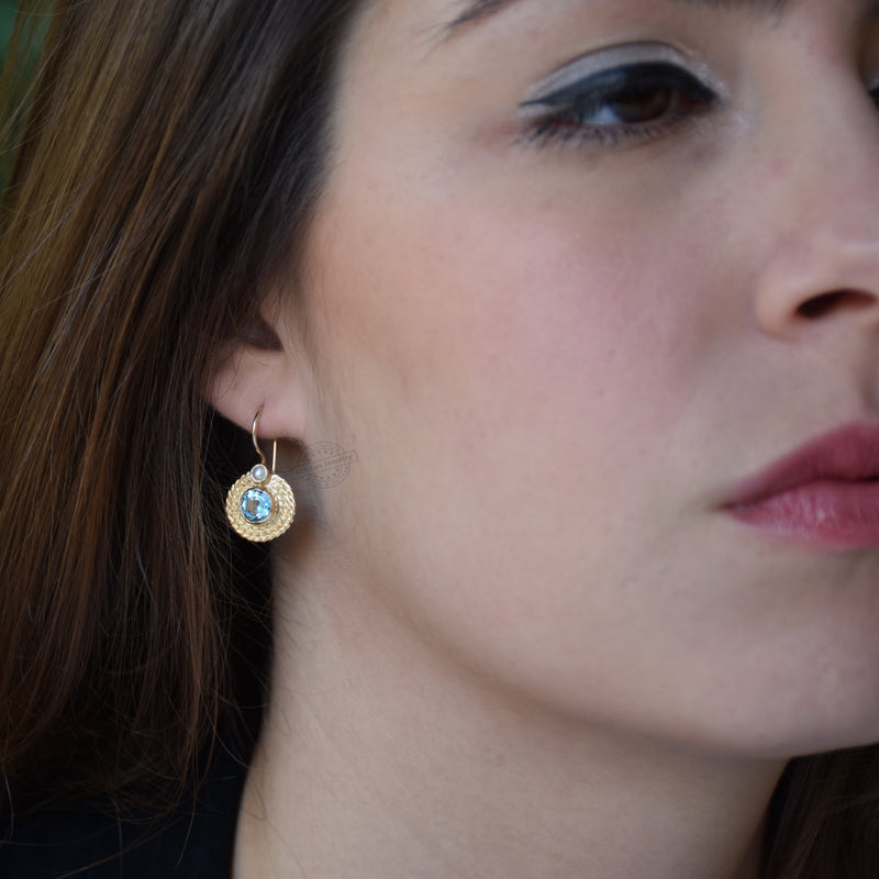 EG0761 Gold Braided Drop Earrings with Topaz and Pearls