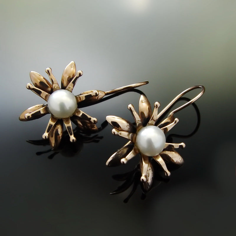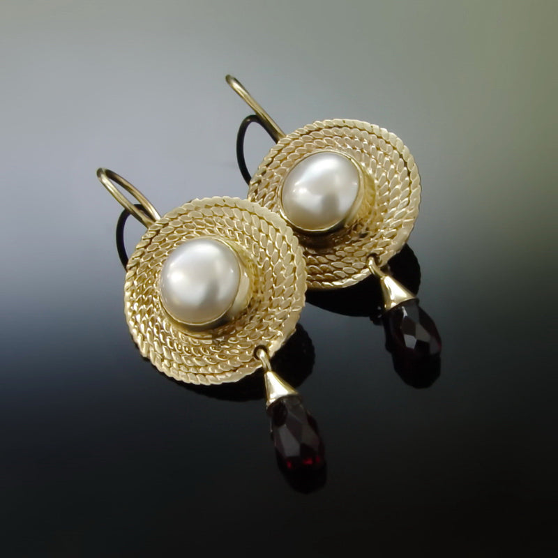 EG0763A Braided Gold Earrings with Pearl and Garnet