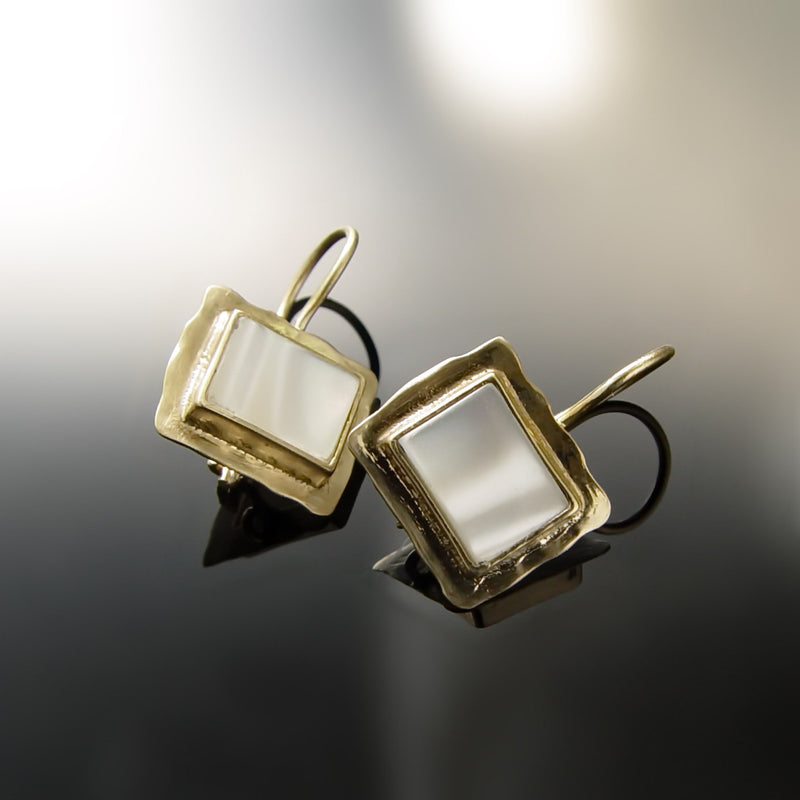 EG0781B Textured Gold Square Earrings with Mother of Pearls