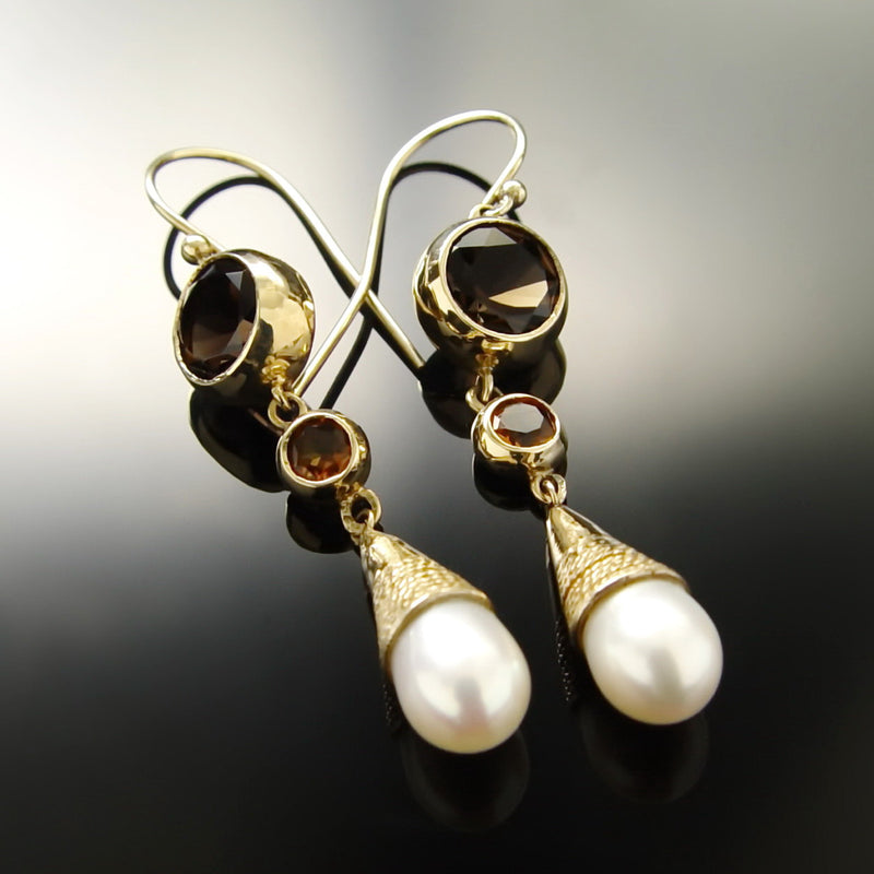 EG0789A Glamorous Smoky Topaz Gold Earrings