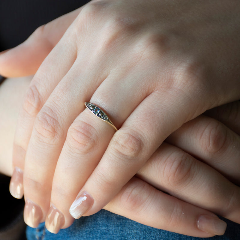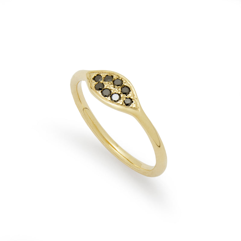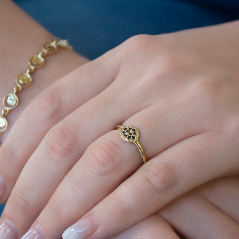 RG1787A-1 Dainty Gold Ring with Eight Black Diamonds