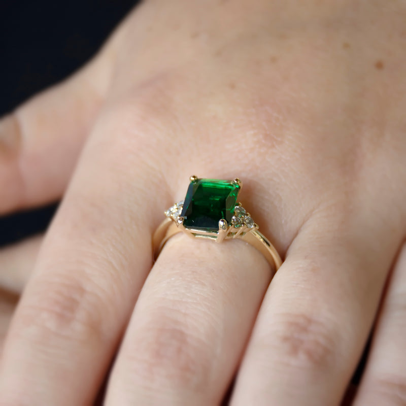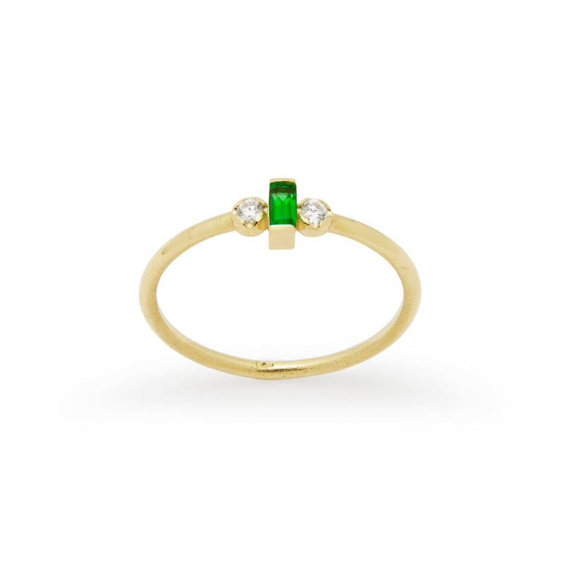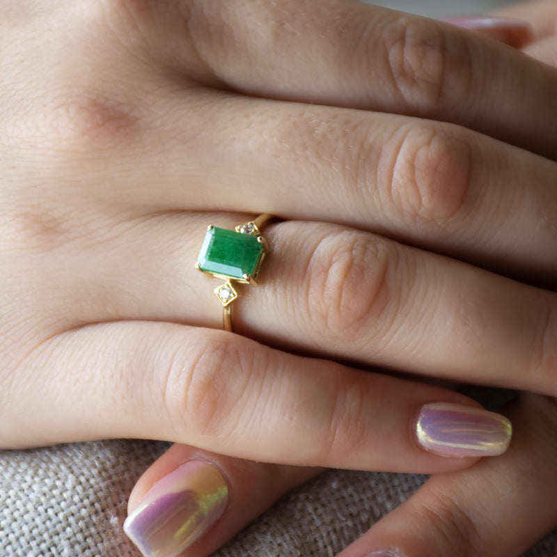 RG1917 Dainty Gold Ring with Square Emerald and Diamond Accents
