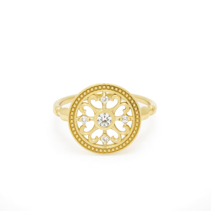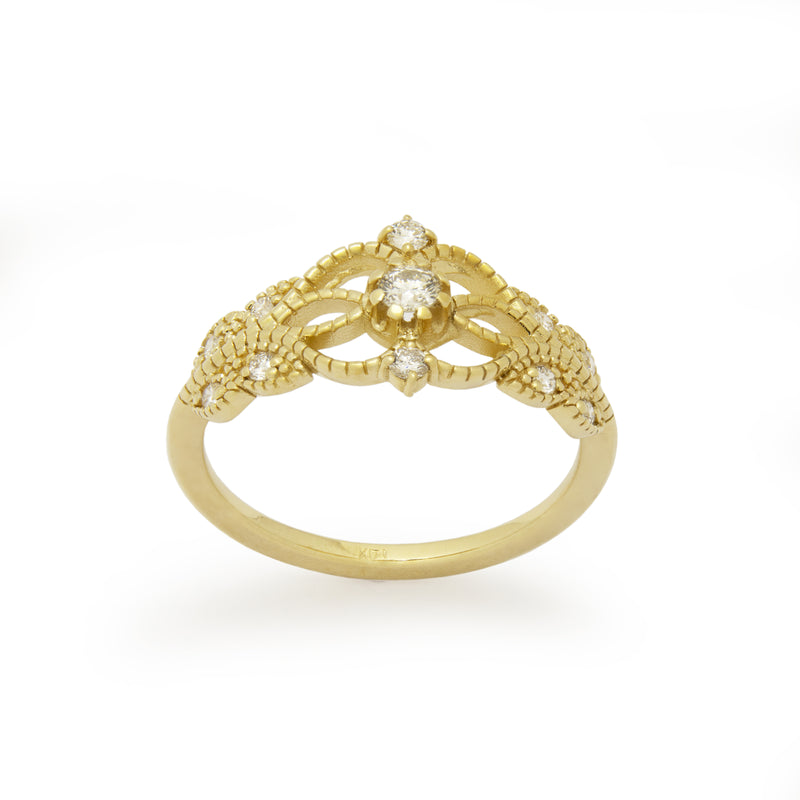 RG1911 Romantic Gold Ring with Diamond and Filigree Details