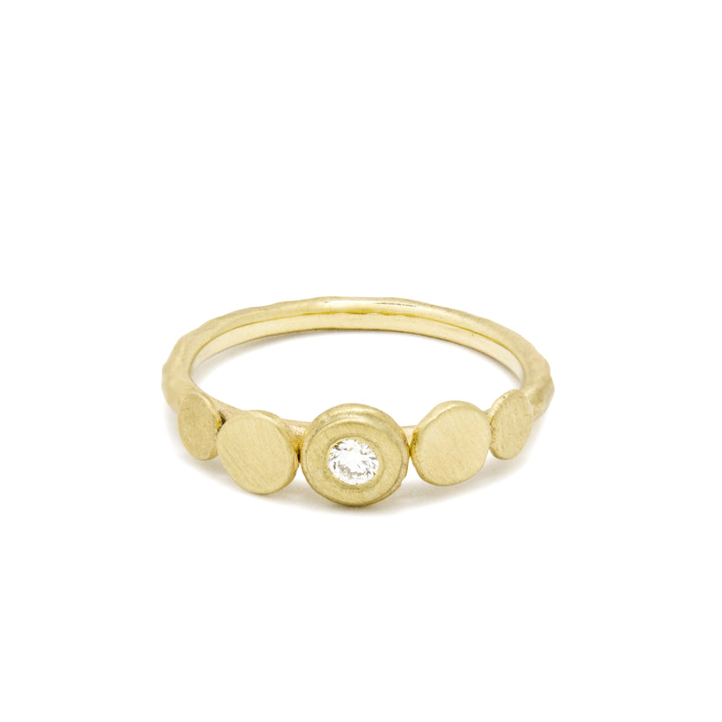 RG1927 GMatte Gold Ring with Dotted Top Pattern, Scratch Texture, and Diamond Accent