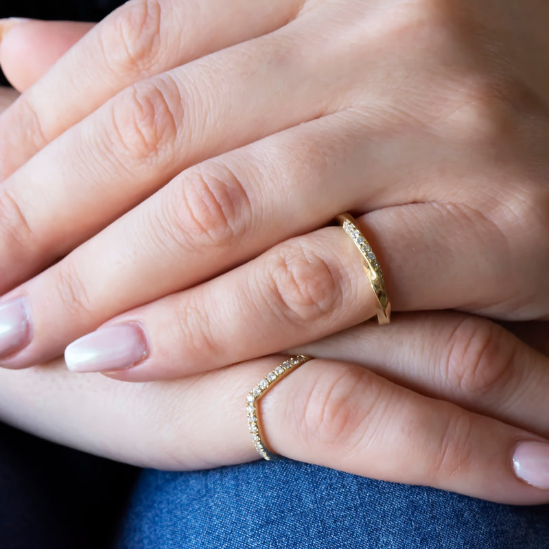 RG1935 Modern Mobius Twist Ring With Nine Sparkling Diamonds In Yellow Gold Band