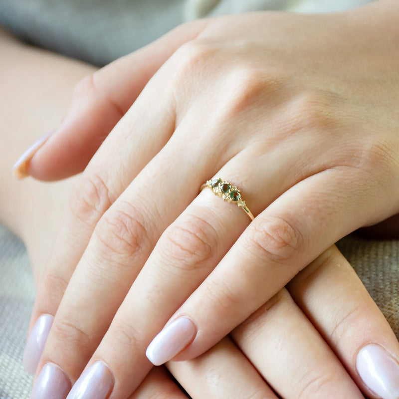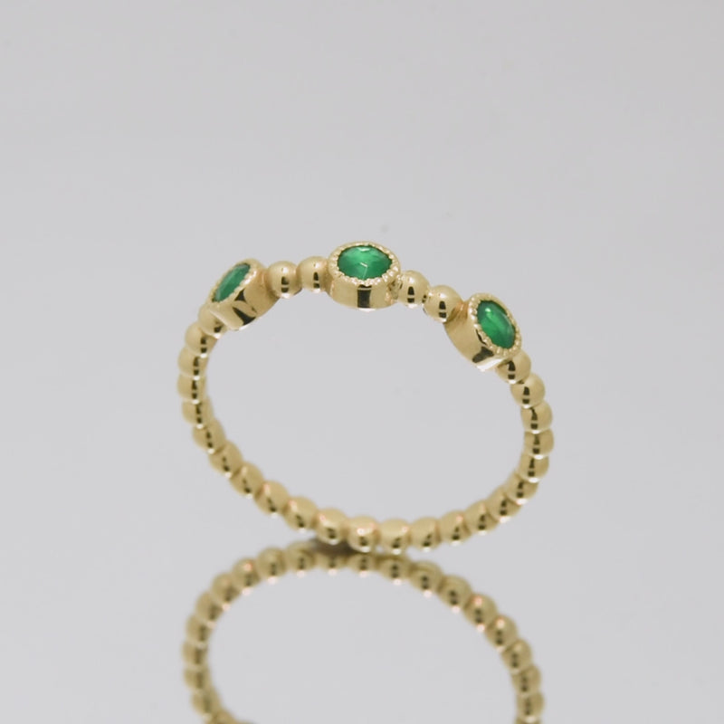 RG1830-3 Triple Emerald Dotted Gold Band Ring