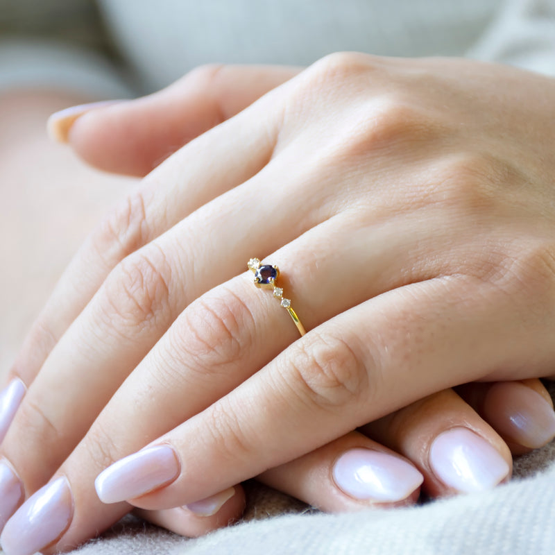 RG1941 Elegant Iolite And Diamond Engagement Ring With Graduated Diamond Accent, Yellow Gold, Iolite Engagement Ring