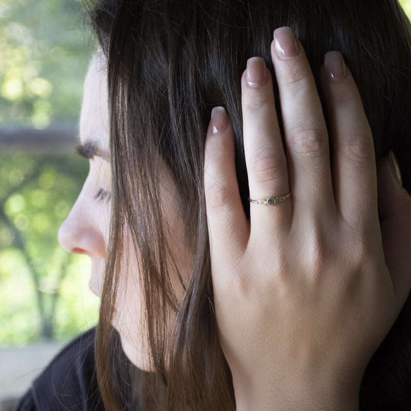 RG1787C-1 Dainty Gold Ring with Ten Black Diamonds