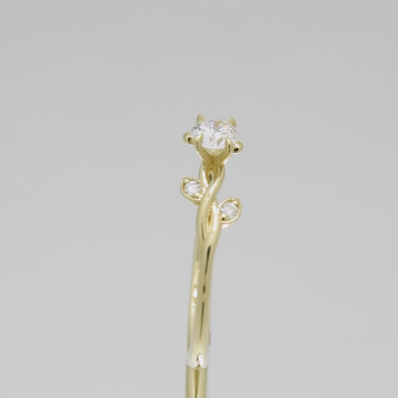 RG1948 Elegant 14K Gold Ring with Blue Topaz Centerpiece and Sparkling Diamond Accents in a Delicate Leaf