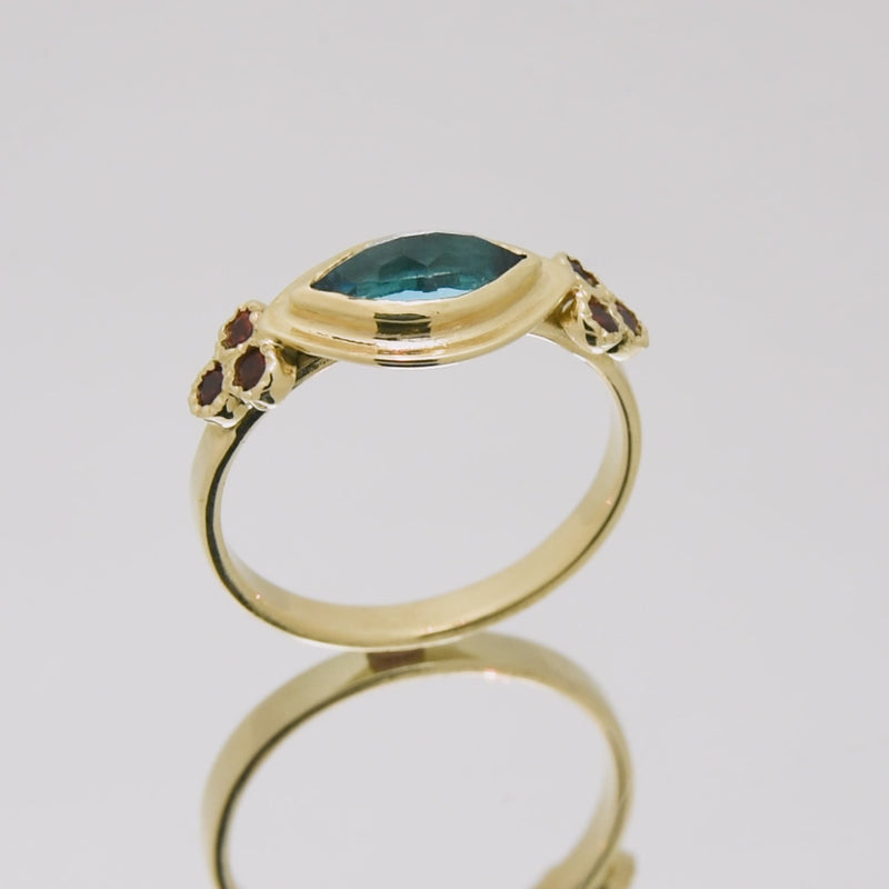 RG1870A-1 Gold Ring with Marquise Topaz and Garnet Accents