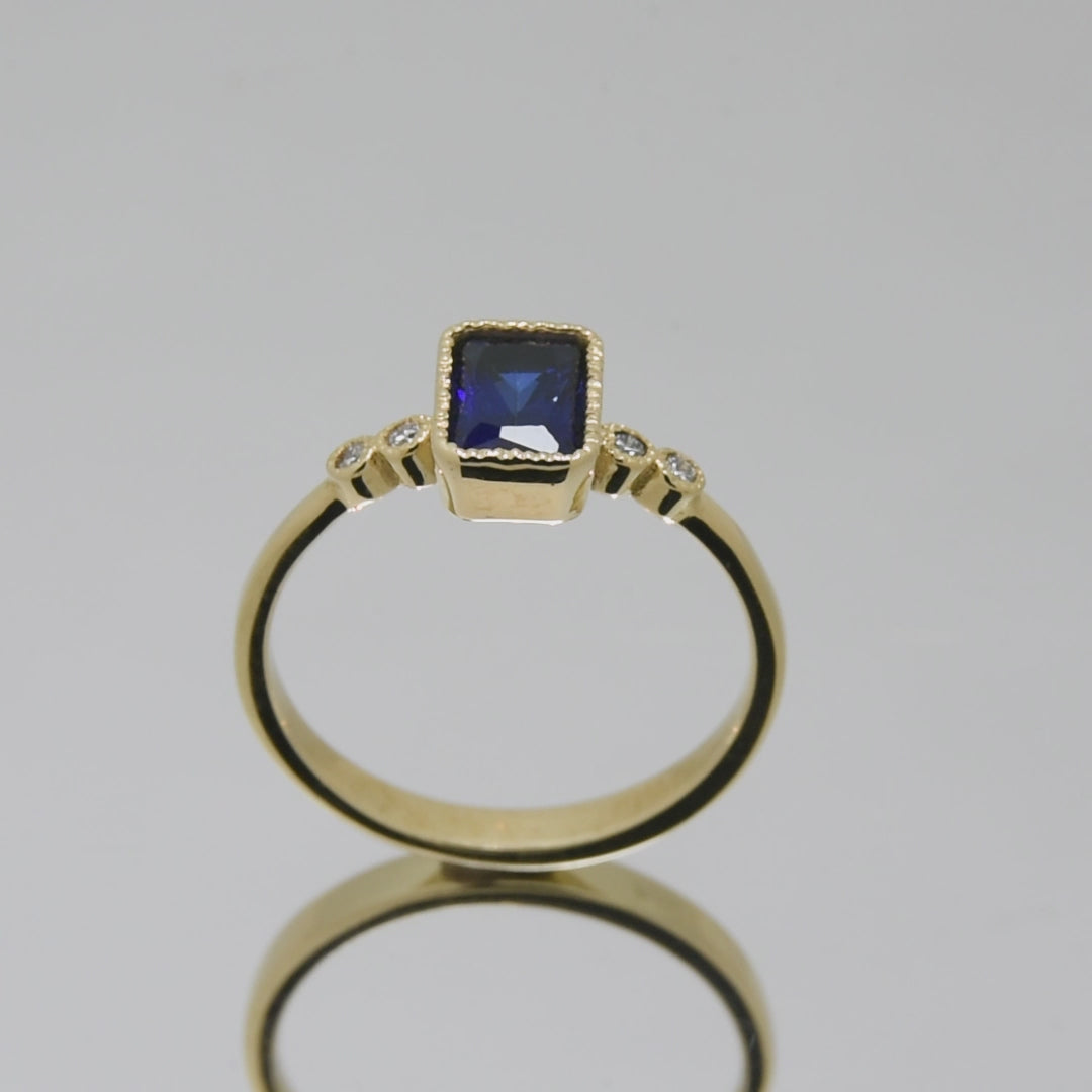 RG1834-2 Gold Ring with Square Blue Sapphire and Zircon Accents