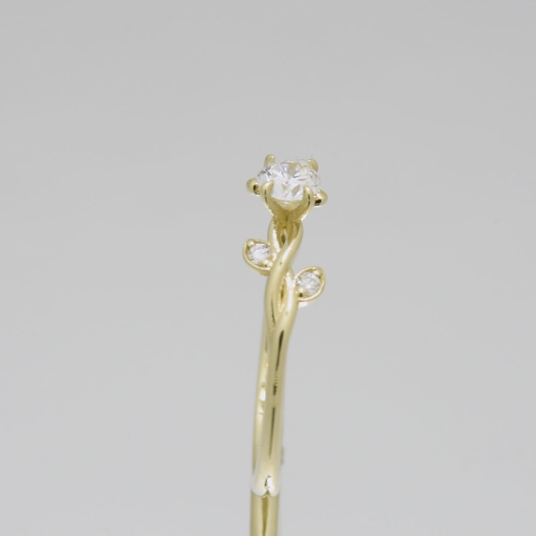 This delicate gold ring features a graceful swivel design. It showcases a center Diamond accompanied by smaller diamonds. The combination of diamond sizes adds a touch of elegance and sophistication, making this ring a perfect piece for both everyday wear and special occasions.