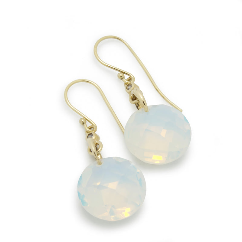 EG7894-2 Gold Dangle Earrings with Faceted Opalite and Tiny Zircons