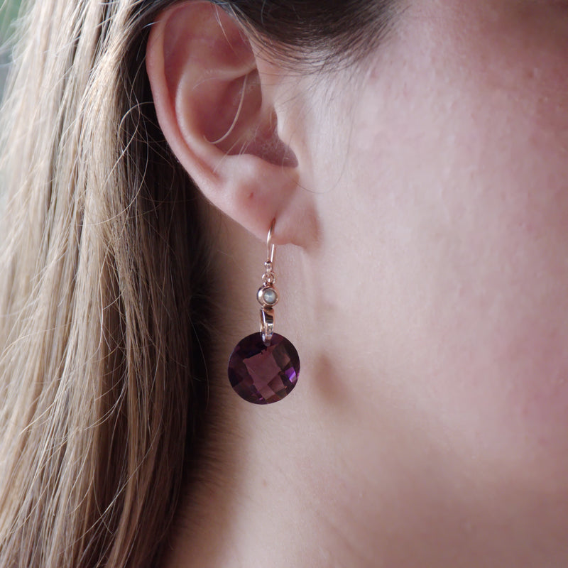 EG7895 Purple Quartz and Gold Earrings with Tiny Pearls