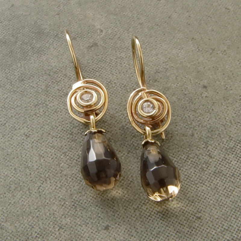 EG7769B-1 Spiral gold earrings with Smokey Quartz