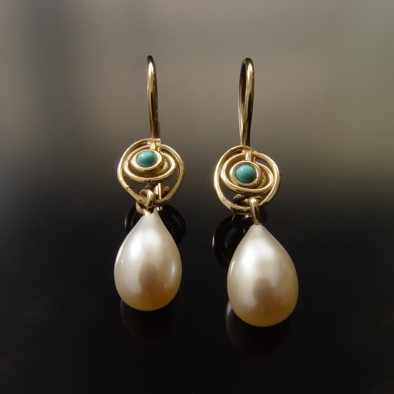 EG0761 Gold Braided Drop Earrings with Topaz and Pearls
