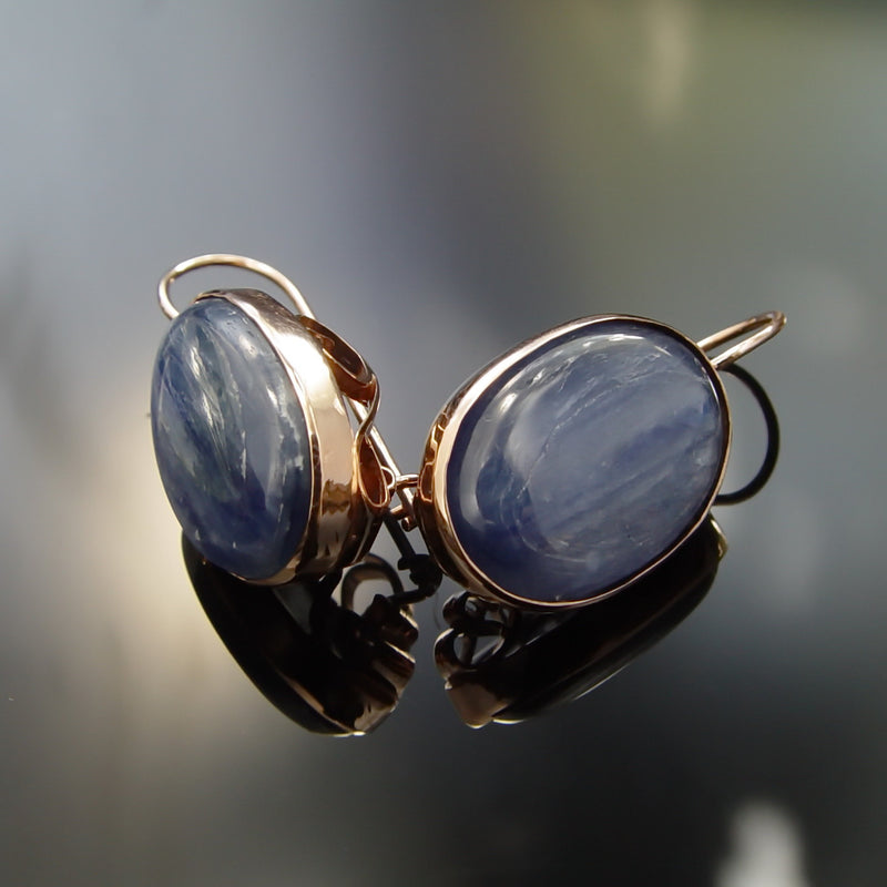 EG2216 Rose Gold Flower Earrings with Blue Topaz