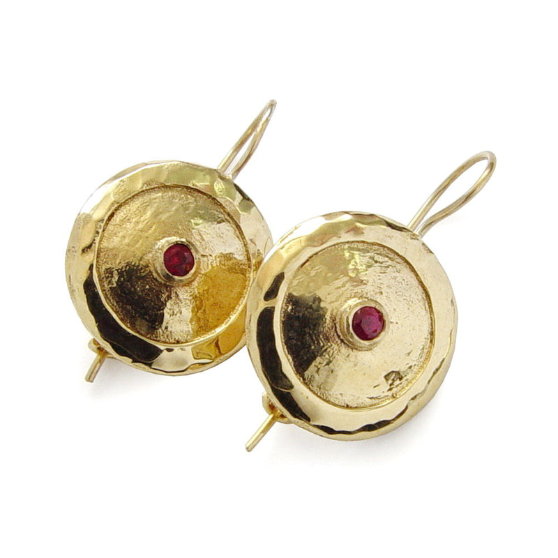 EG2217 Classic Round Gold Drop Earrings with Garnet and Zircon