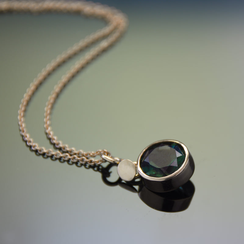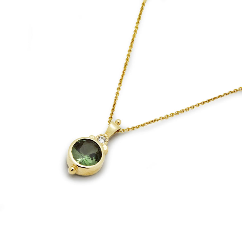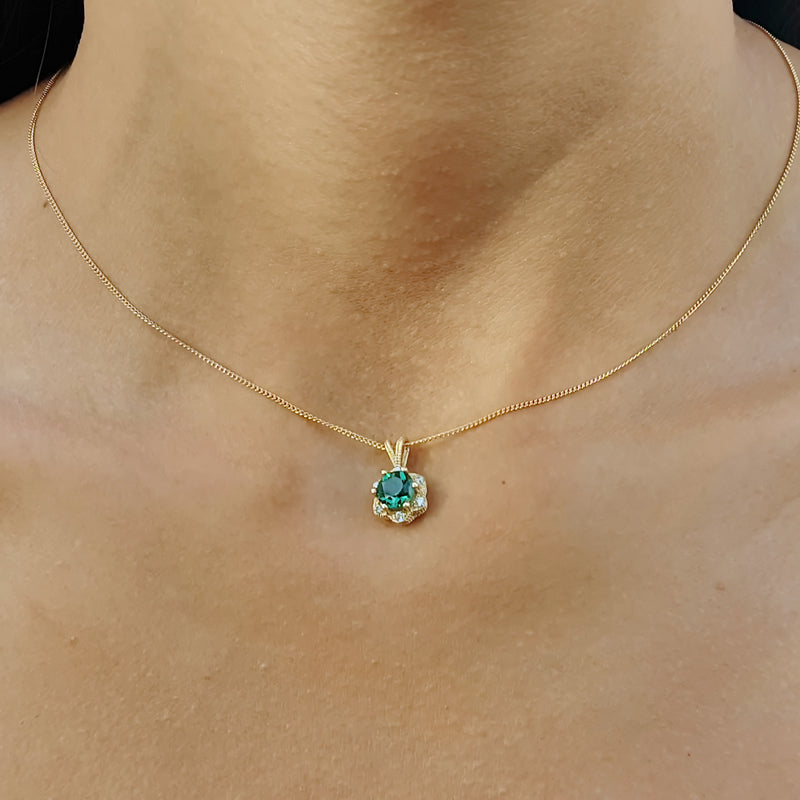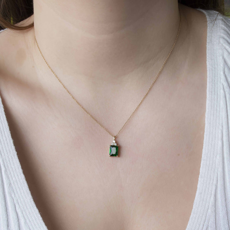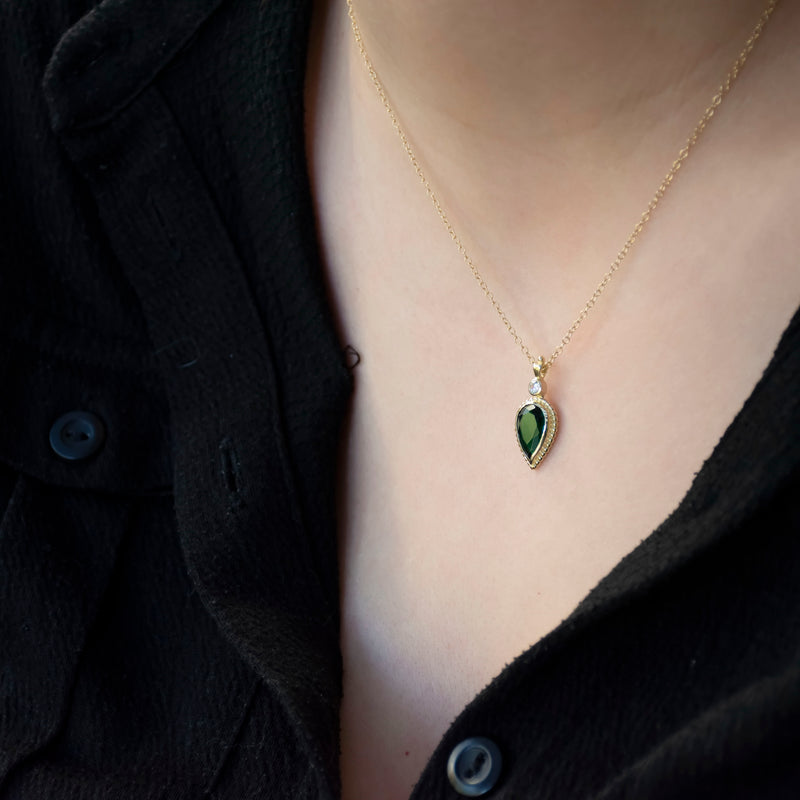 NG4747 Gold Necklace with Deep Green Spinel and Zircon Pendant