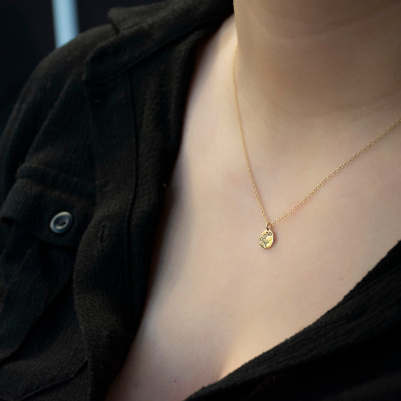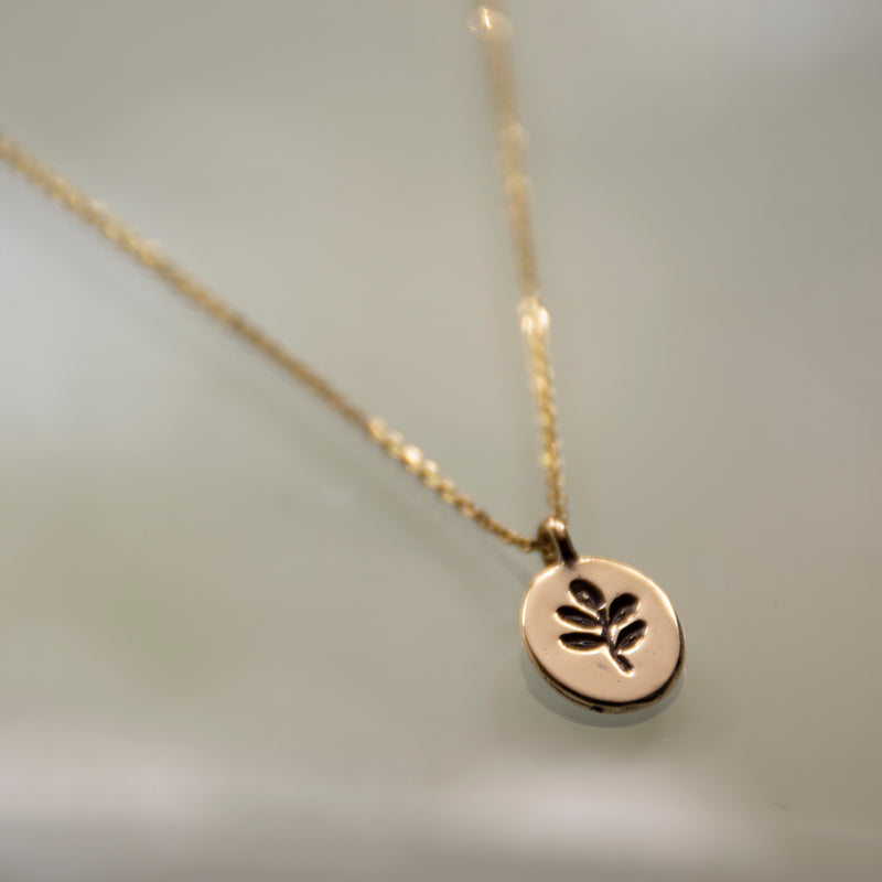 NG4768A Hand-Stamped Leaf Oval Pendant Gold Necklace