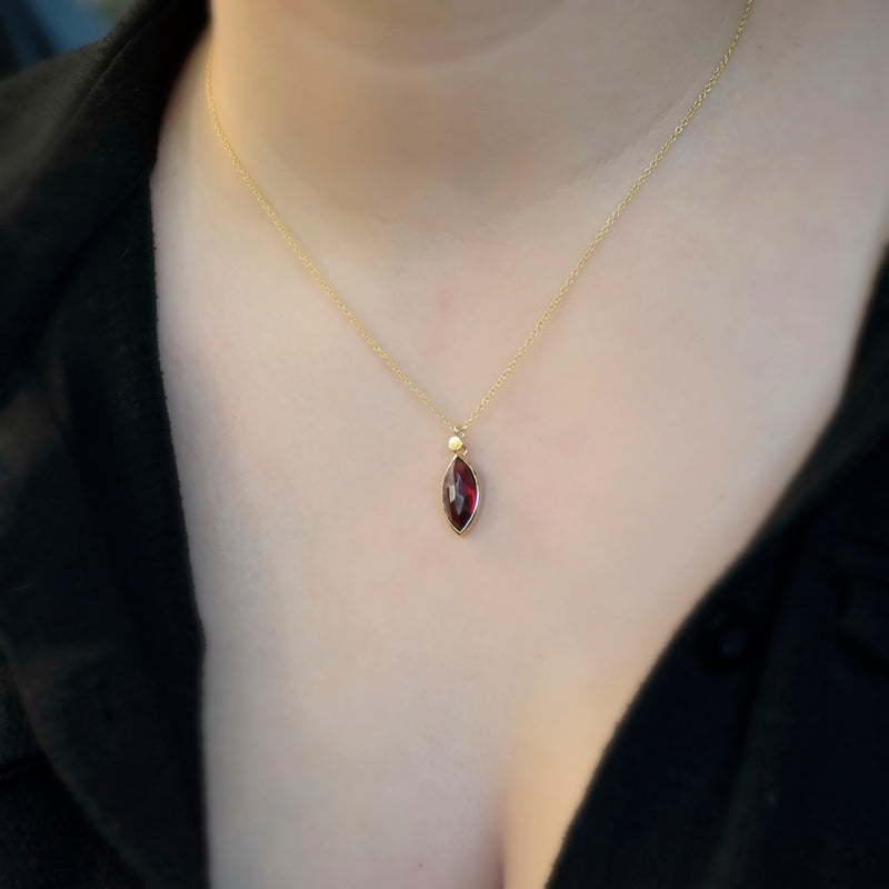 NG4770-1 Gold Necklace with Marquise Garnet Charm