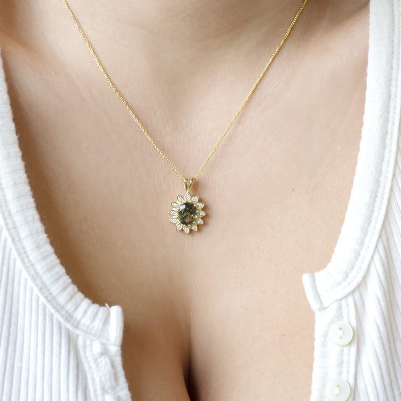 NG4789 Sunflower Gold Pendant Necklace with Green Spinel & Zircons