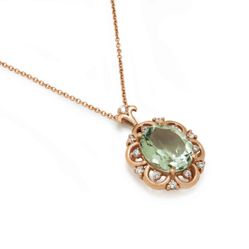 NG4789 Rose Gold Oval Pendant Necklace with Green Spinel & zircons