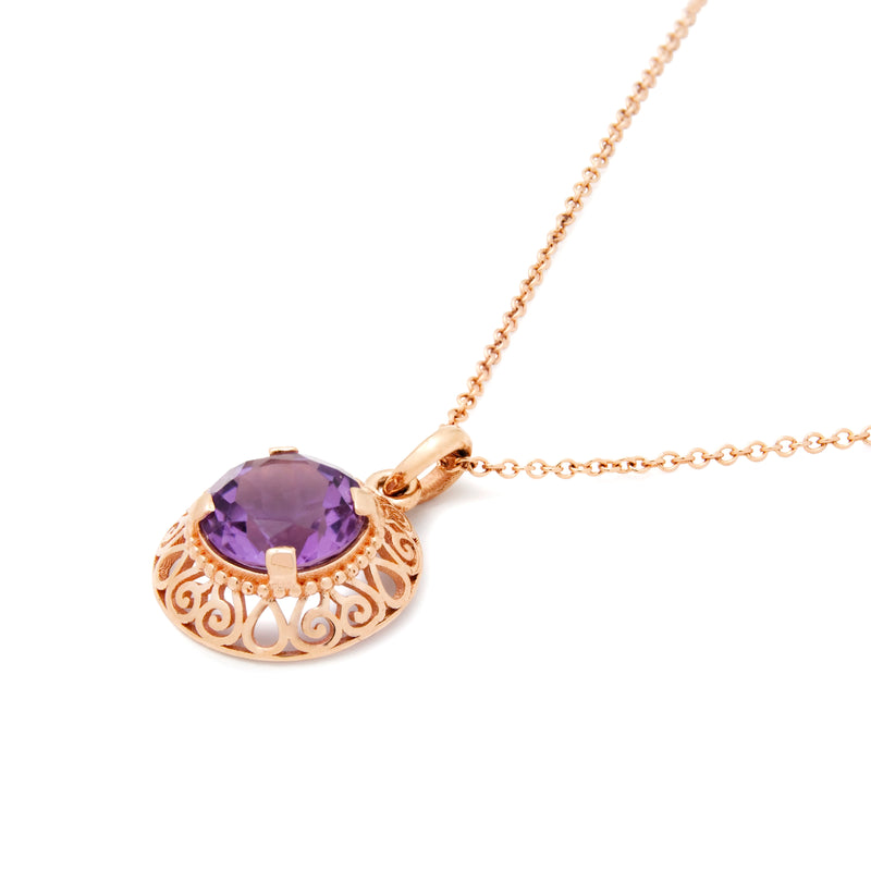 NG4791-1 Elegant Amethyst Pendant Necklace in Rose Gold with Intricate Filigree Detail