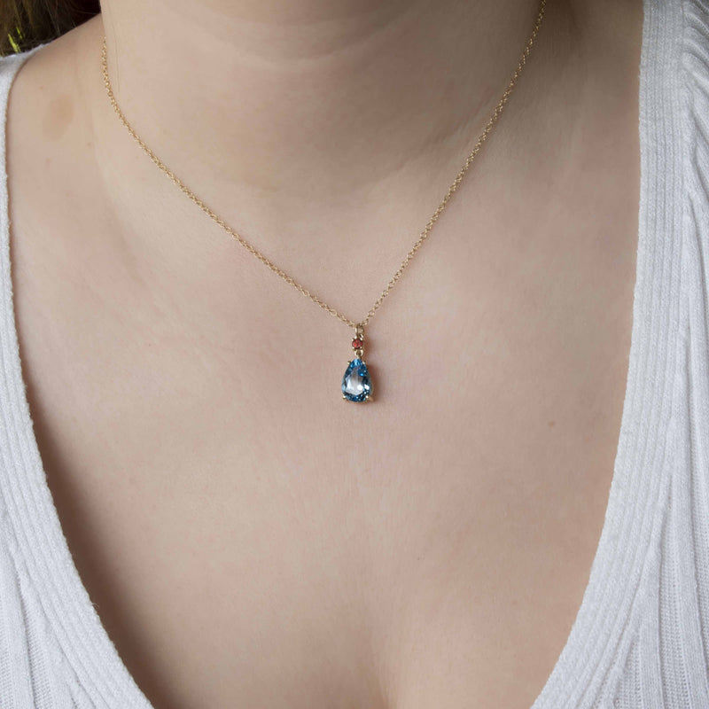 NG4805-1 Exquisite Pear-Shaped Blue Topaz and Garnet Pendant Necklace