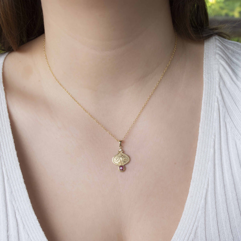 NG4810 Ethnic-Inspired Gold Pendant Necklace with Natural Ruby and Diamond