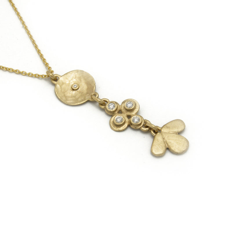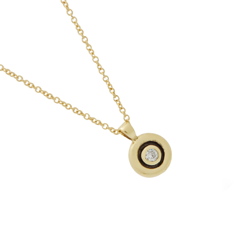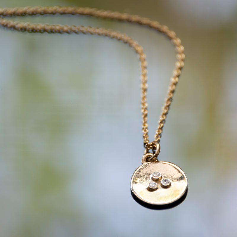 NG4767A Gold Round Charm Necklace with Three Diamonds