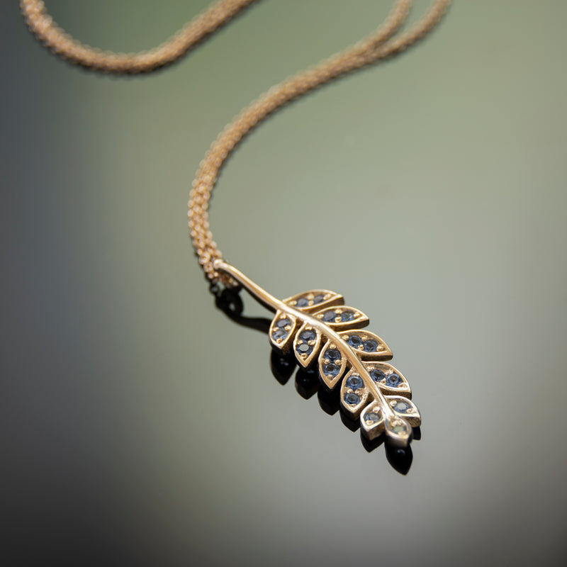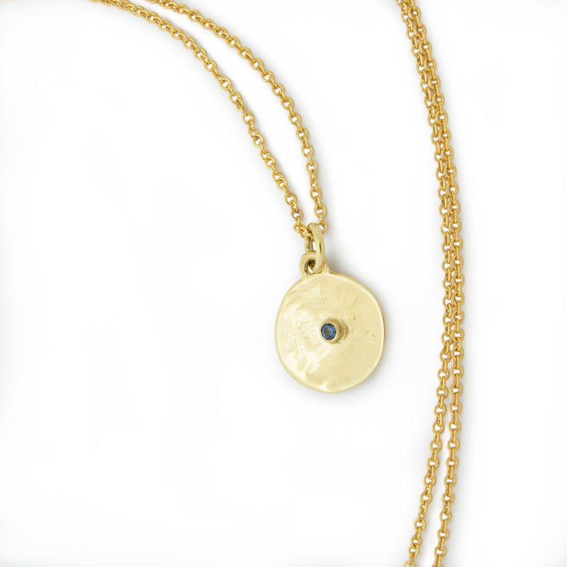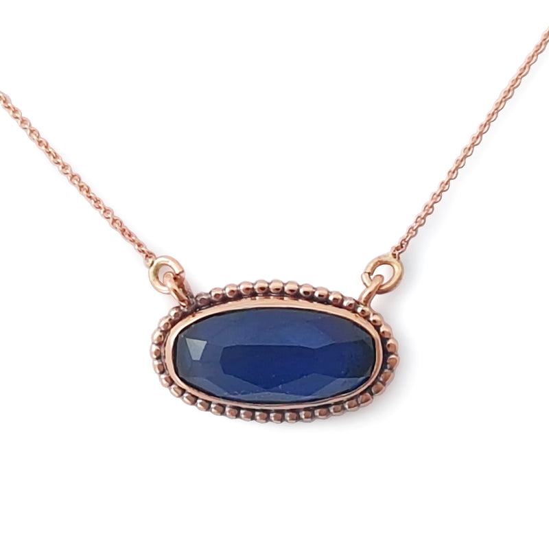 NG4756 Rose Gold Necklace with Oval Sapphire Pendant and Gold Dots