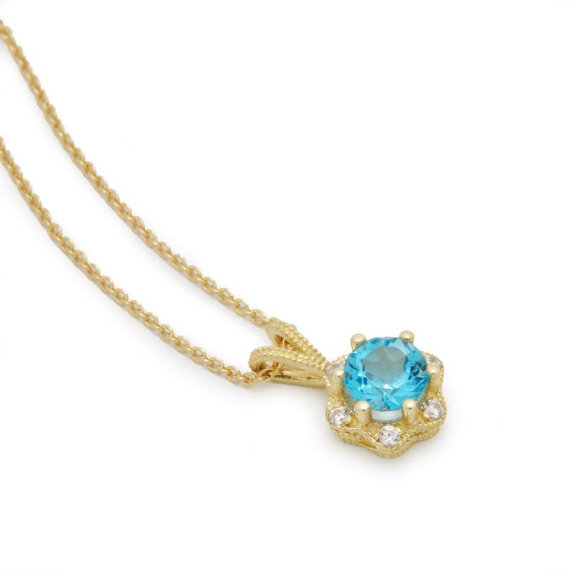 NG4757-1 Gold Necklace with Blue Topaz and Diamonds Flower Pendant