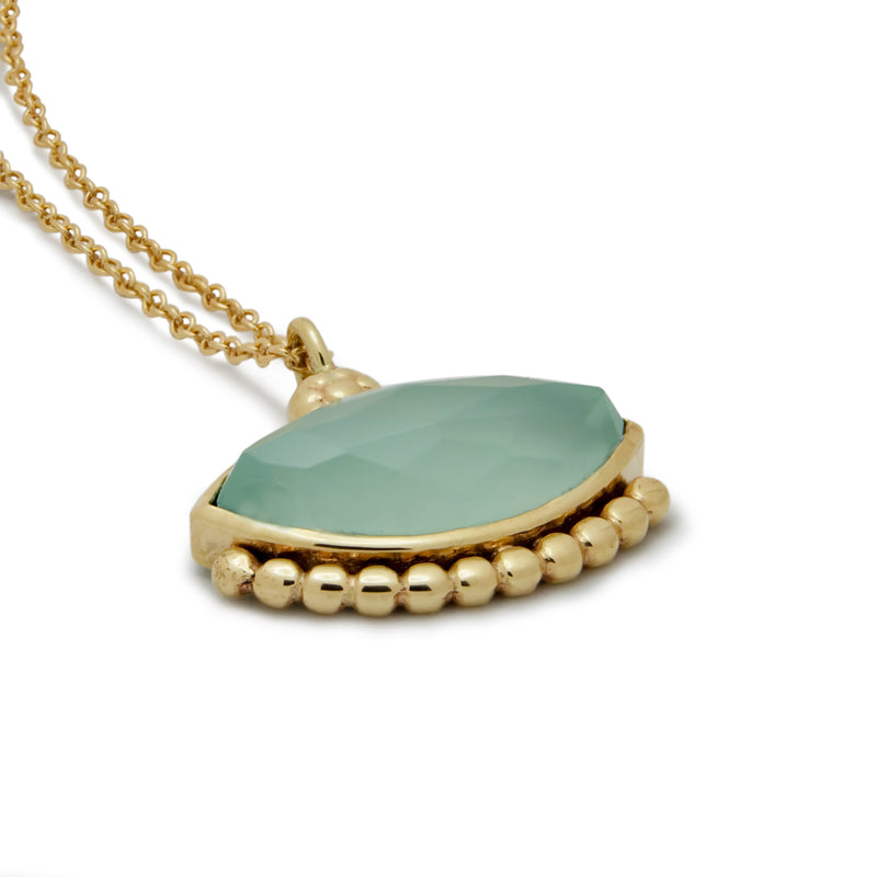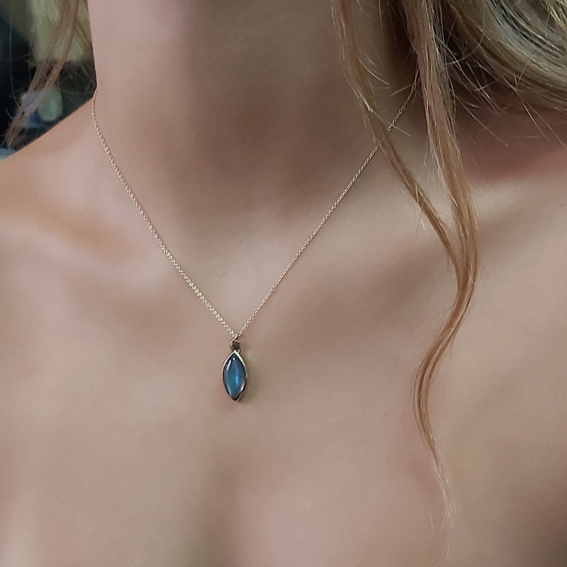 NG4770 Gold Necklace with Marquise Labradorite Charm