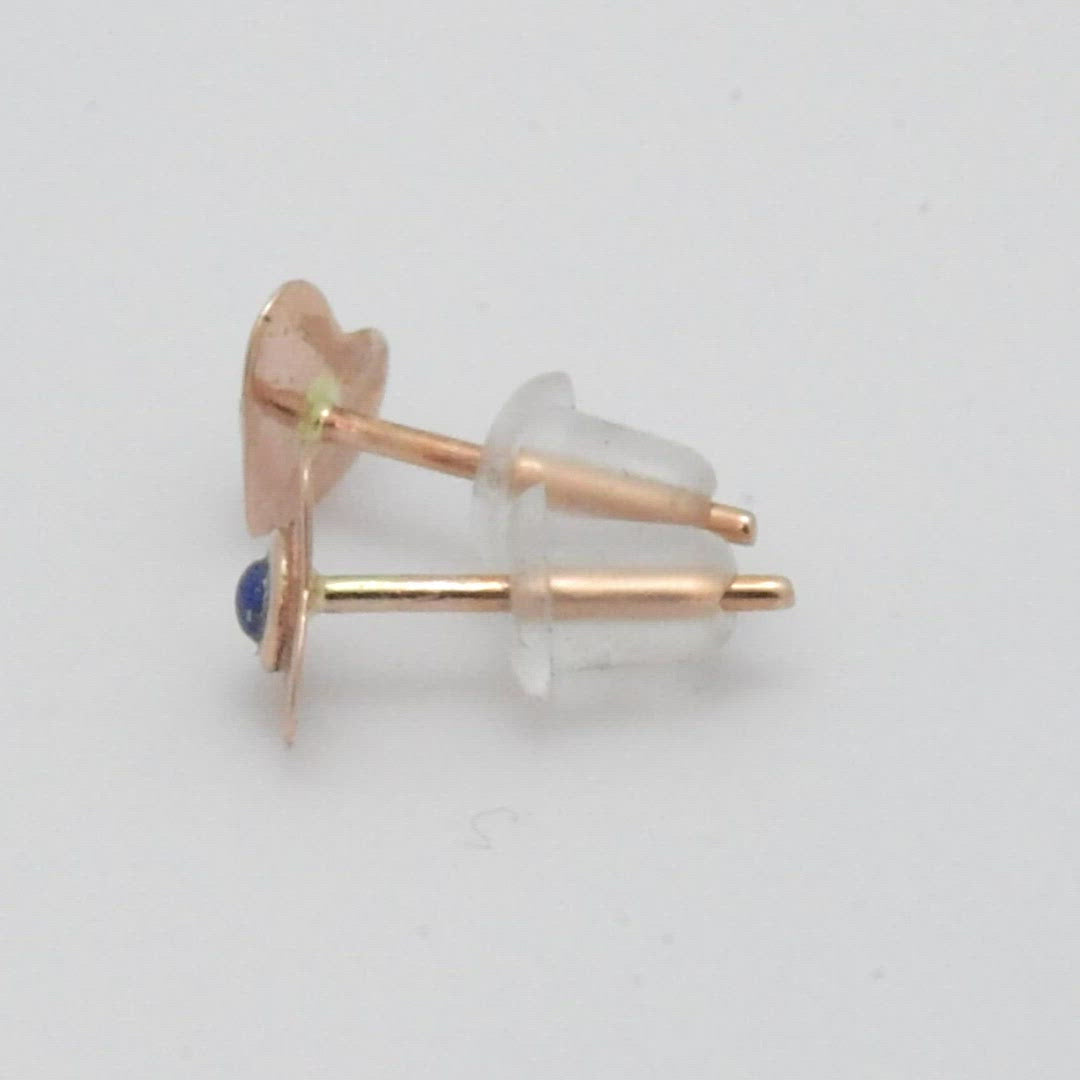14K gold Heart studs with Blue Lapis Lazuli set in the center.