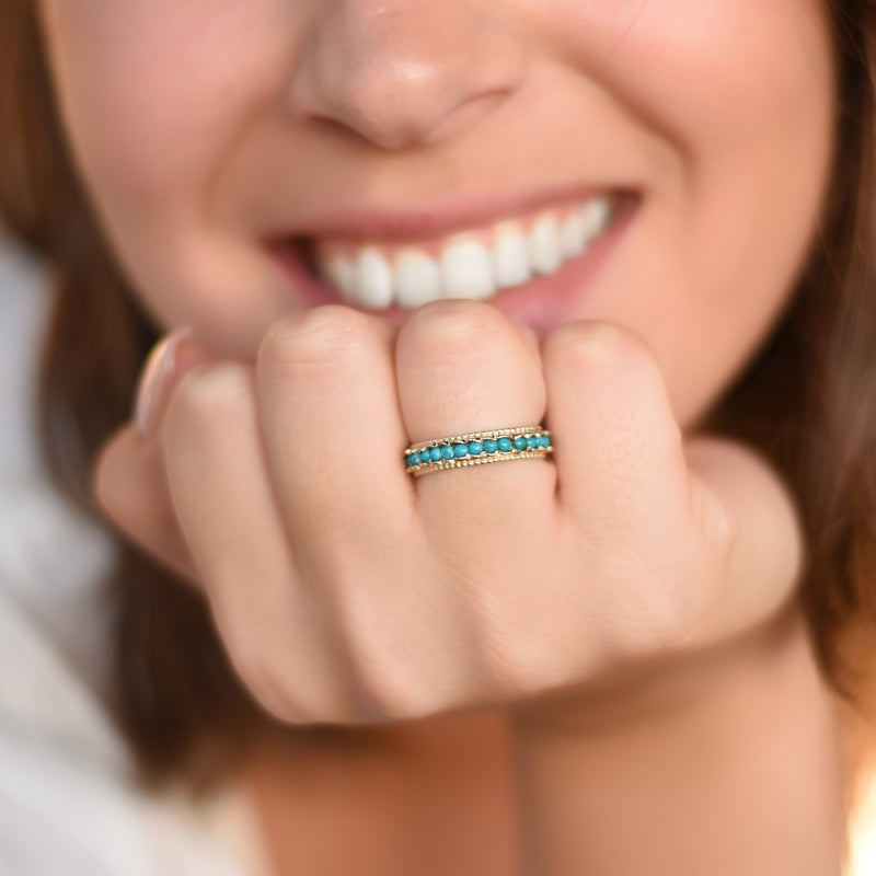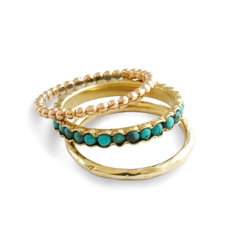 RG0911- Set of Turquoise and Gold Stacking Rings