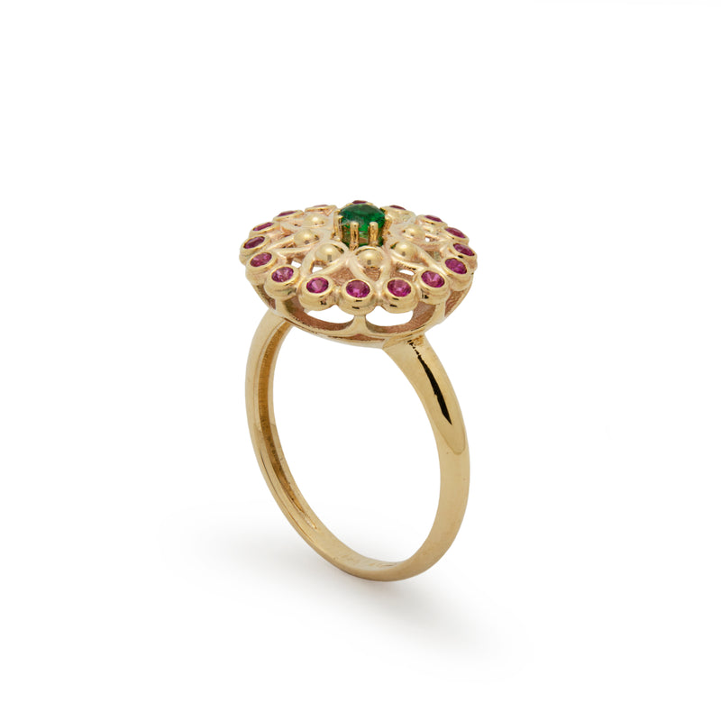 EG2243 Gold Flower Earrings with Emerald and Ruby