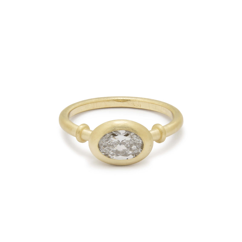 RG1970-1 Modern Oval Iolite Bezel Ring in 14k Matte Gold