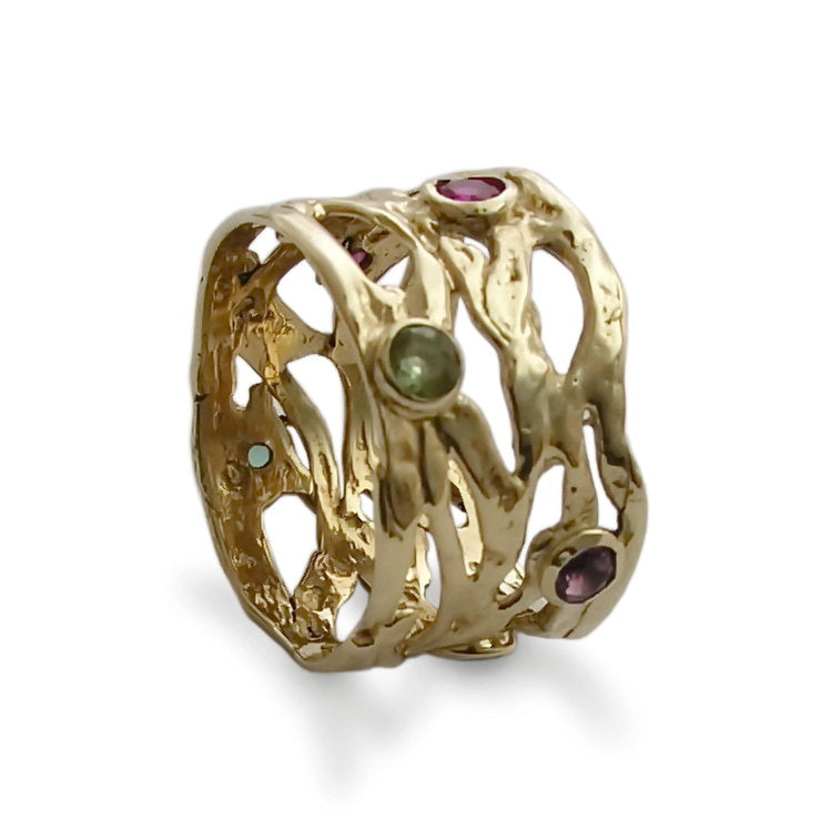 RG1503 Rose Gold Crown Ring with Green Quartz